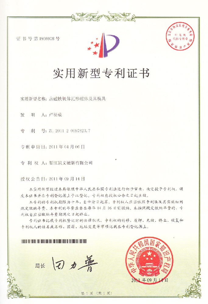 永磁鐵氧體瓦形磁體及其模具