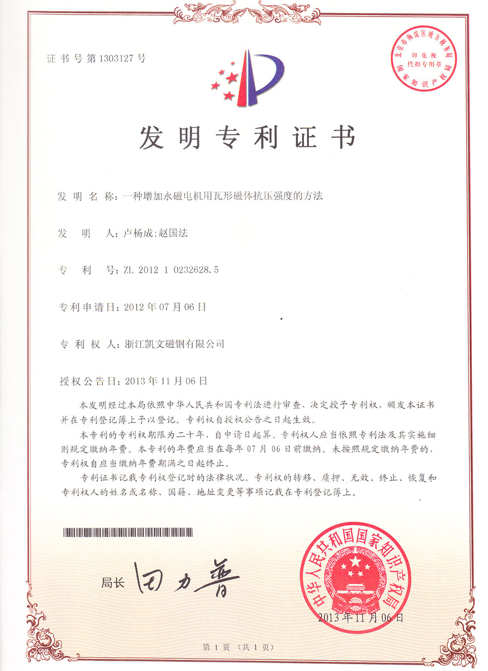 一種增加永磁電機(jī)用瓦形磁體抗壓強(qiáng)度的方法